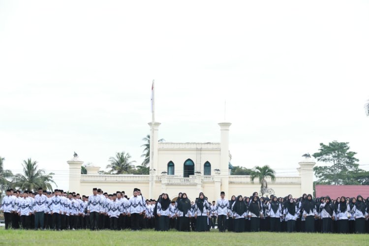 Bupati Siak, Afni Zulkifli, yang bertindak sebagai Inspektur Upacara, menyampaikan apresiasi setinggi-tingginya atas pengabdian yang tak mengenal lelah dari seluruh guru di Kabupaten Siak. Ia menyebut para guru sebagai pilar utama pembangun karakter generasi masa depan.