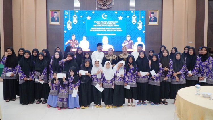 JAGOK.CO - RIAU - Berbuka Puasa Bersama Keluarga Besar Kejaksaan Tinggi Riau, Pada Kamis, 28 Maret 2024, sekitar pukul 17.30 WIB, di Aula Vicon Lt. III Gedung Satya Adhi Wicaksana Kejaksaan Tinggi Riau, Kejaksaan Tinggi Riau menggelar acara Buka Puasa Bersama yang dihadiri oleh Keluarga Besar Kejaksaan Tinggi Riau, Ikatan Adhyaksa Dharmakarini (IAD) Wilayah Riau, Panti Asuhan Yayasan Fajar Harapan, dan Insan Media (TV, Cetak, dan Online).