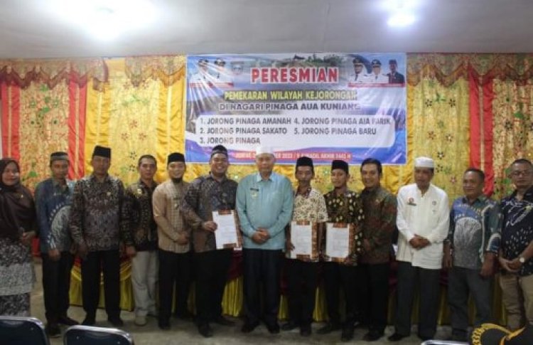 Dengan demikian Nagari Pinaga Aua Kuniang yang memiliki wilayah sangat luas tersebut kini telah memiliki total 5 Kejorongan dimana sebelumnya hanya memiliki satu Kejorongan saja.