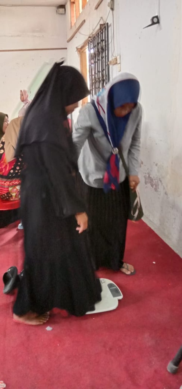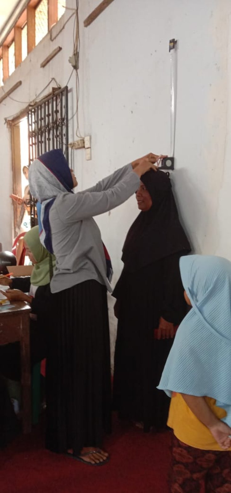 Proses pengecekan kesehatan dilakukan mulai dari menimbang berat badan, mengukur tinggi badan, mengukur tekanan darah dan mengukur kadar gula dalam darah.