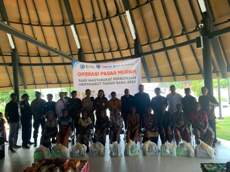 TOPIKPUBLIK.COM - Napan, NTT - Berkolaborasi dengan aparat setempat, Pos Napan Satgas Yonkav 6/ Naga Karimata hadiri Pasar Murah yang diselenggarakan di PLBN Napan dalam rangka menyambut Tahun Baru 2024 bertempat di Desa Napan, Kab. TTU, Prov. NTT.(29/12/23)